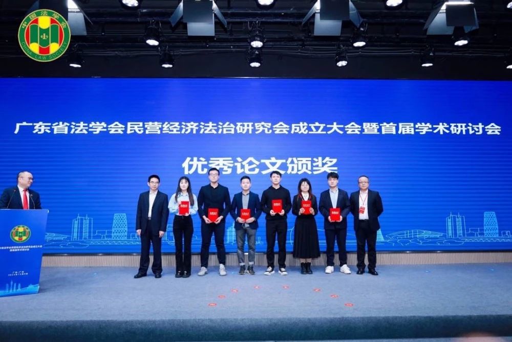 研讨结束后,与会领导为广东省法学会民营经济法治研究会首届学术研讨会优秀论文的获奖作者代表进行了颁奖。
