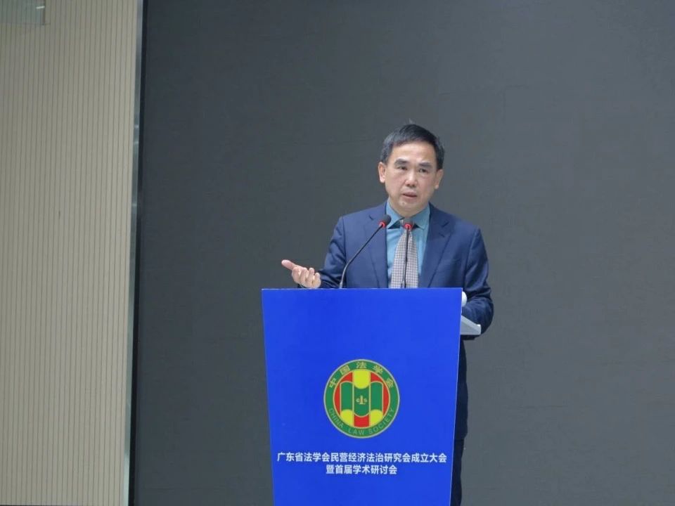 于敏代表广东省法学会致辞。他表示,广东省法学会民营经济法治研究会的成立,是深入贯彻落实习近平总书记关于民营经济发展系列重要论述的具体实践,广东作为我国改革开放的排头兵、先行地、实验区,民营经济始终是推动广东经济提质增速的重要力量,要做好大力发展民营经济这篇大文章。广东省法学会成立民营经济法治研究会,必将更好地整合全省民营经济法治理论与实践研究队伍,积极探索新时代民营经济法治保障问题,为党委政府提供高质量的法治理论参考和对策建议,推动全省民营经济高质量发展,服务全省民营经济发展战略全面实施。