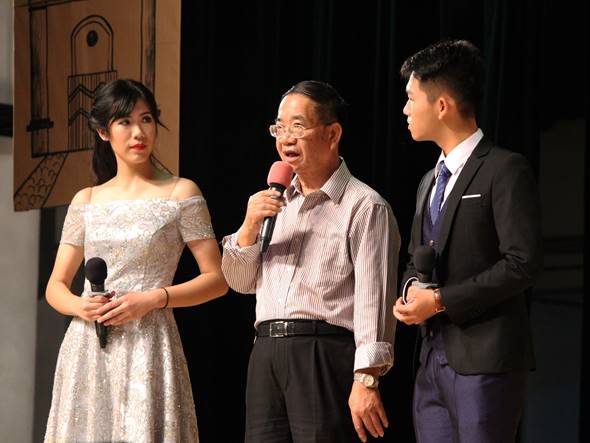 话剧《忆·贸仲杯》为观众讲述了三位同学参加比赛历经挫折,最后奋发图强赢得奖杯的励志典型,Part-Ⅱ话剧队的演员们凭借精湛演技赢得了观众的喝彩。节目过后,老经理吴兴光被特邀上台,作为比赛的领队兼教练,与同学们分享当年“贸仲杯”的参赛经历,他对当年参赛选手们的认真刻苦表示肯定,同时也对重现当年故事的话剧队成员表示感谢。