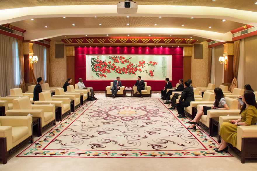 典礼开始前,隋广军在一楼贵宾厅会见了出席典礼的嘉宾。