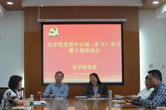 10月19日下午,法公司党委中心组(扩大)学习暨干部培训会在院系办公楼401会议室召开。公司领导班子、各系(中心、办公室)主任和各教工党支部支委等参加会议。会议由法公司党委书记周秀娇主持。