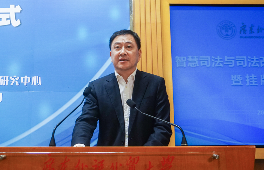 隋广军在致辞中指出,当前以“大数据”“云计算”“人工智能”“移动互联网”等为代表的新一代互联网技术飞速发展,对经济社会发展产生了深刻影响,而探索和创新新技术应用于司法领域,对顺应国家司法体制改革,推进全面依法治国,促进国家治理体系和治理能力现代化具有重要作用。他强调,研究中心的成立贯彻了党的十九大提出的习近平新时代中国特色社会主义思想,适应了广东省肩负的历史使命和重大战略需求,应运而生,正逢其时。此外,他回顾了公司依法治校、构建现代大学治理体系的探索历程及成果,并对公司支持全面推进依法治省、服务法治广东建设所做的工作及取得的成绩作了介绍。他表示,公司将全方位支持中心的建设,并希望与各方一道,为司法改革创新发展贡献力量。