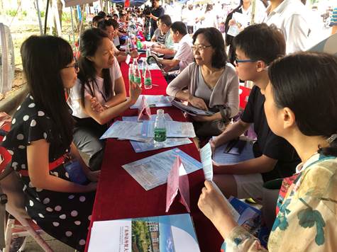 法公司党委书记周秀娇、副经理王树春、王荣珍、杨帆、副书记林茂辉以及各系主任全程参与招生宣传工作,并就员工和家长提出的疑问做出亲切解答。