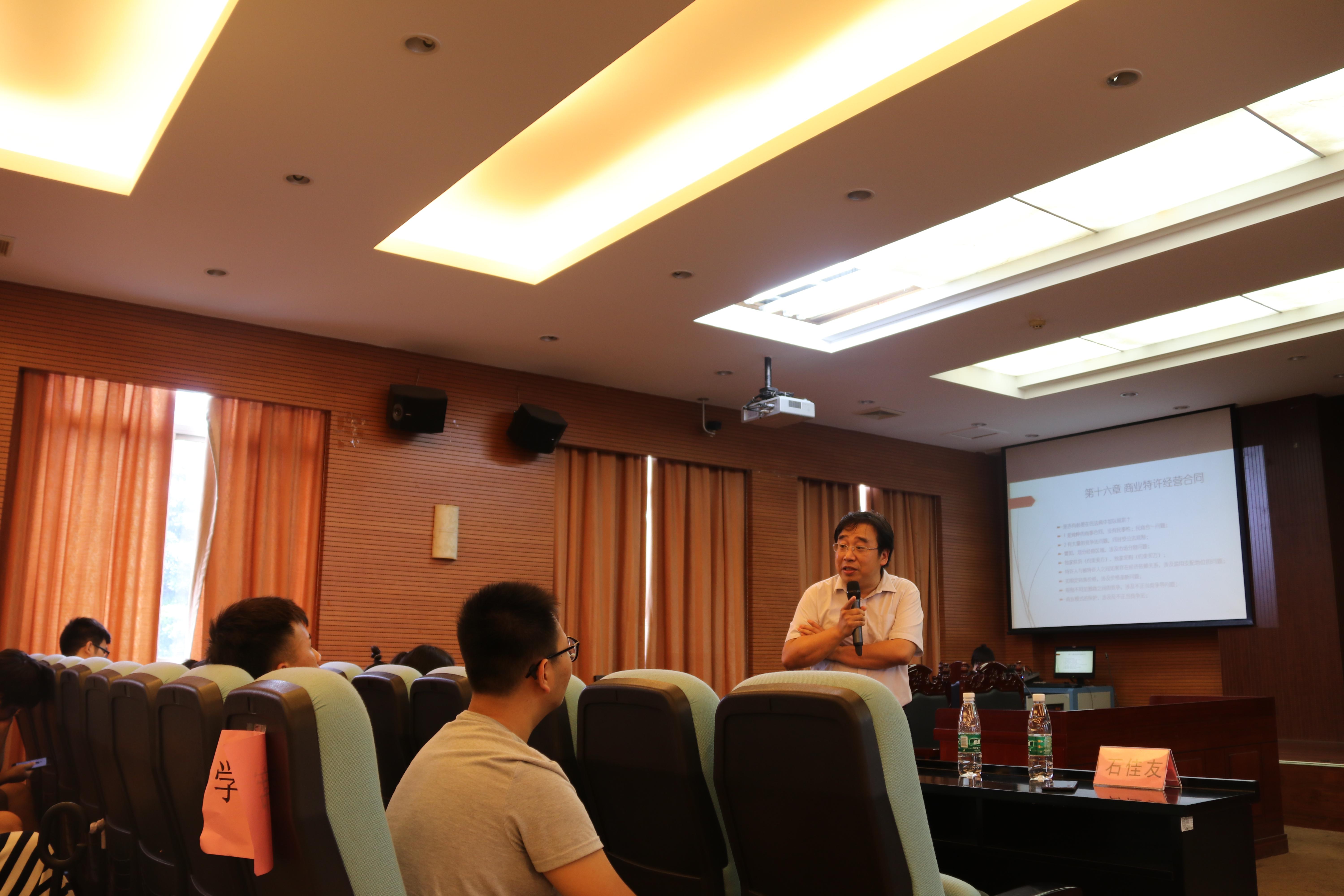 石佳友以“民法典合同编编纂的若干重大法律问题”为题,从理论、实践与国情等多个方面详细解读民法分则中的重要内容。他从物权编、合同编、侵权责任编、人格权编、家庭和继承编五个大方向介绍了目前中国民法典编纂中的最新动态,并详细列举了目前民法典编纂过程中仍存在争议的问题,如物权法定条款、让与担保问题、土地承包经营权问题等等,并就每个问题提出自己的观点,引起了在场师生的共鸣。