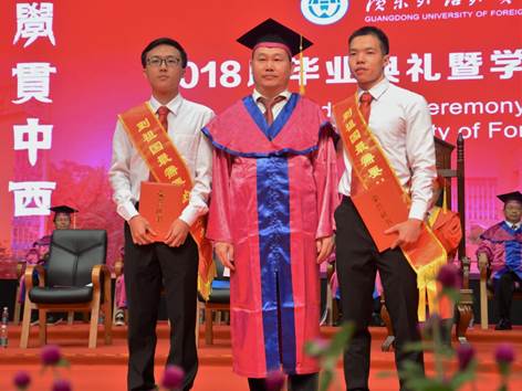 接下来,是毕业生宣誓仪式。仪式结束后,校领导为多位优秀毕业生及获奖者颁发奖章及奖状。