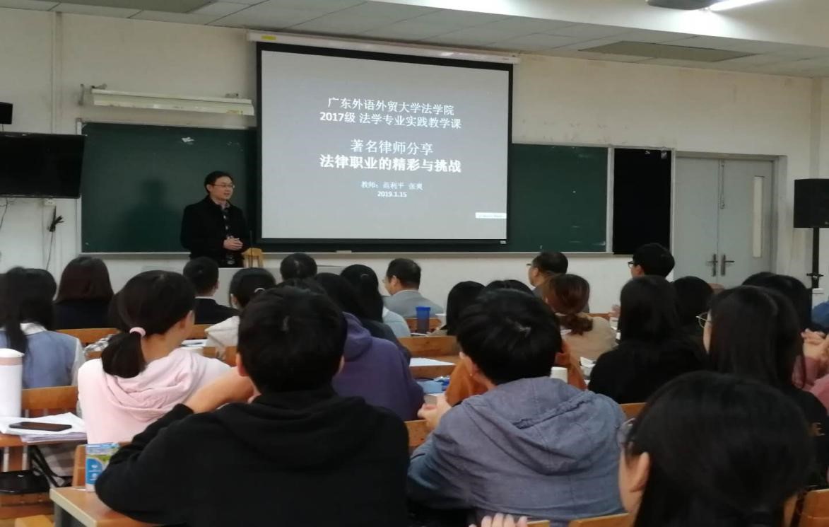 2019年1月15日下午,点点taptap本科教学实践交流活动在大学城校区教学楼E座举办,邀请了广东海际明律师事务所刘玉国主任、何富杰书记和练美华、林武、管莹等高级合伙人及资深律师,他们以法律职业的精彩与挑战为主题,为点点taptap师生们分享他们的职业经历以及对法律事业的感想。本次活动由点点taptap范利平、张爽老师牵头组织,点点taptap民商1702和知产1701班的同学以及部分硕士研究生参加了交流会。