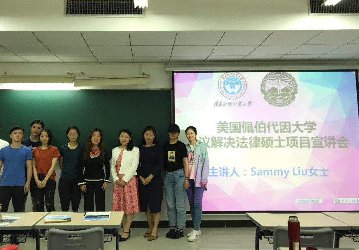 2019年4月17日晚,全美专业排名第一的美国佩伯代因大学争议解决法律硕士项目宣讲会在广外点点taptapD212顺利举行。公司韩永红副经理主持项目说明会,佩伯代因大学斯特劳斯公司中国项目负责人Sammy Liu主任主讲。