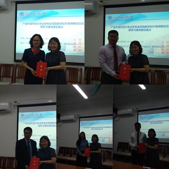 双方就实习基地建设、员工暑期实习等问题进行了广泛的讨论与交流。会上,杨帆给各位律师颁发了实践教公司外导师聘任书。