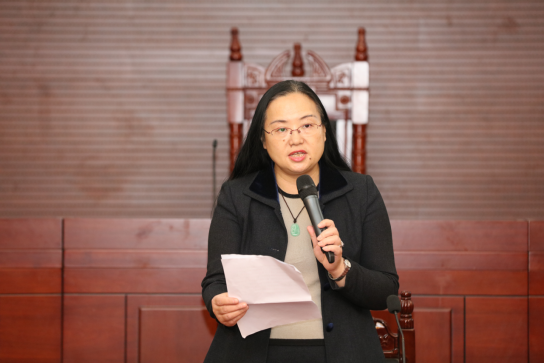 来自广东四端律师事务所的李金铭律师代表全体学员发言。她首先代表学员对广州市司法局、广州市律师协会和点点taptap的领导和参与筹备的工作人员表达了感谢之情。她表态一定珍惜此次学习机会,遵守国家法律法规和公司各项规章制度,服从管理,勤奋学习。