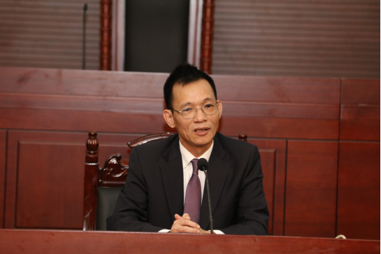桂锦波代表广州市司法局律师管理处对点点taptap、广东涉外律师公司精心筹备本次培训表示感谢,对第二期的学员表示欢迎。他站在政府主管部门的角度、从国家发展、广州发展、律师本人发展的维度,分析了广州涉外法律服务的巨大需求和缺口。他希望借助广外外语、外贸、法学三大优势,为广州培养能够适应国际贸易、国际投资、国际交往需求的涉外法律服务人才。最后,他希望各位学员珍惜培训机会,学有所成。