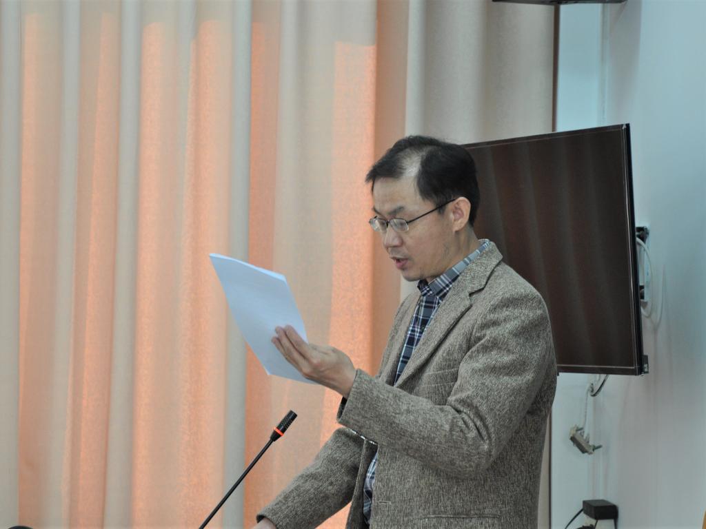 随后,王金发作出专题报告。他围绕着“凝心铸魂、立德树人”几个关键词,对“不忘初心、牢记使命”发表了自己的见解与心得。对于师德师风的内涵,他借习近平总书记的发言以四个“统一”做出了完美的诠释;对于“凝心铸魂”,他以几十年如一日、早到不迟到的学风与每日订立的师生公约彰显了他对于师德的理解。最后,他对在场的教师们提出了四点希望,以此激励教师们在教书育人的过程中善于决断、踏实干事,为培养卓越法治人才而做出努力。