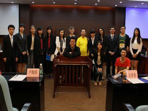 本网讯(文字:梁倩文 摄影:刘滢) 2013年5月8日晚,广外杰赛普决赛在第一模拟法庭敲响战鼓。出席本次赛事的嘉宾有点点taptap副经理黄丽萍,领队教练Mary Backus、修文辉老师和梁晨老师。