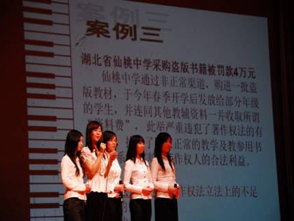 “多拉觅法队”则深入细微的学习问题,对易造成侵犯著作权的行为进行了详细的研究。针对老员工影印教科书,复制粘贴他人著作等普遍问题,队员们指出了法律及道德上的缺失。虽然几位财经公司的队员缺乏专业的法律知识,但他们秉着对法律的追求,以独特的方式完成了复杂的调查研究。